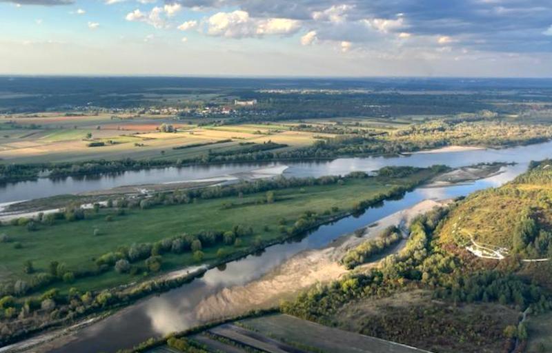 Przepiękna panorama na Małopolski Przełom Wisły i Kazimierz Dolny, który ukrywa się w zieleni na przeciwnym brzegu Wisły.